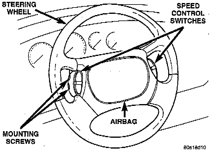 9. Remove the speed control switches from the steering wheel. The speed control switches are mounted to the steering wheel using 2 mounting screws in the side of each speed control switch.