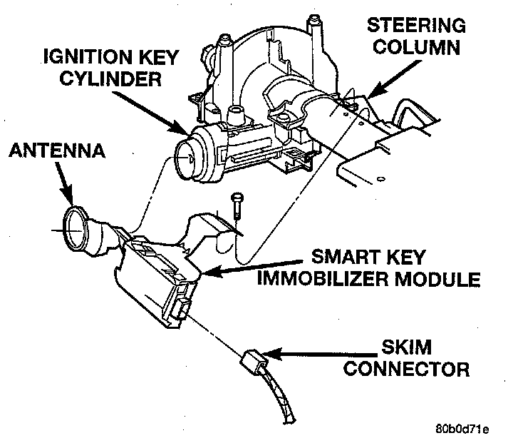 27. If the vehicle being worked on is equipped with the optional Smart Key Immobilizer System, remove the smart key immobilizer module from the steering column.