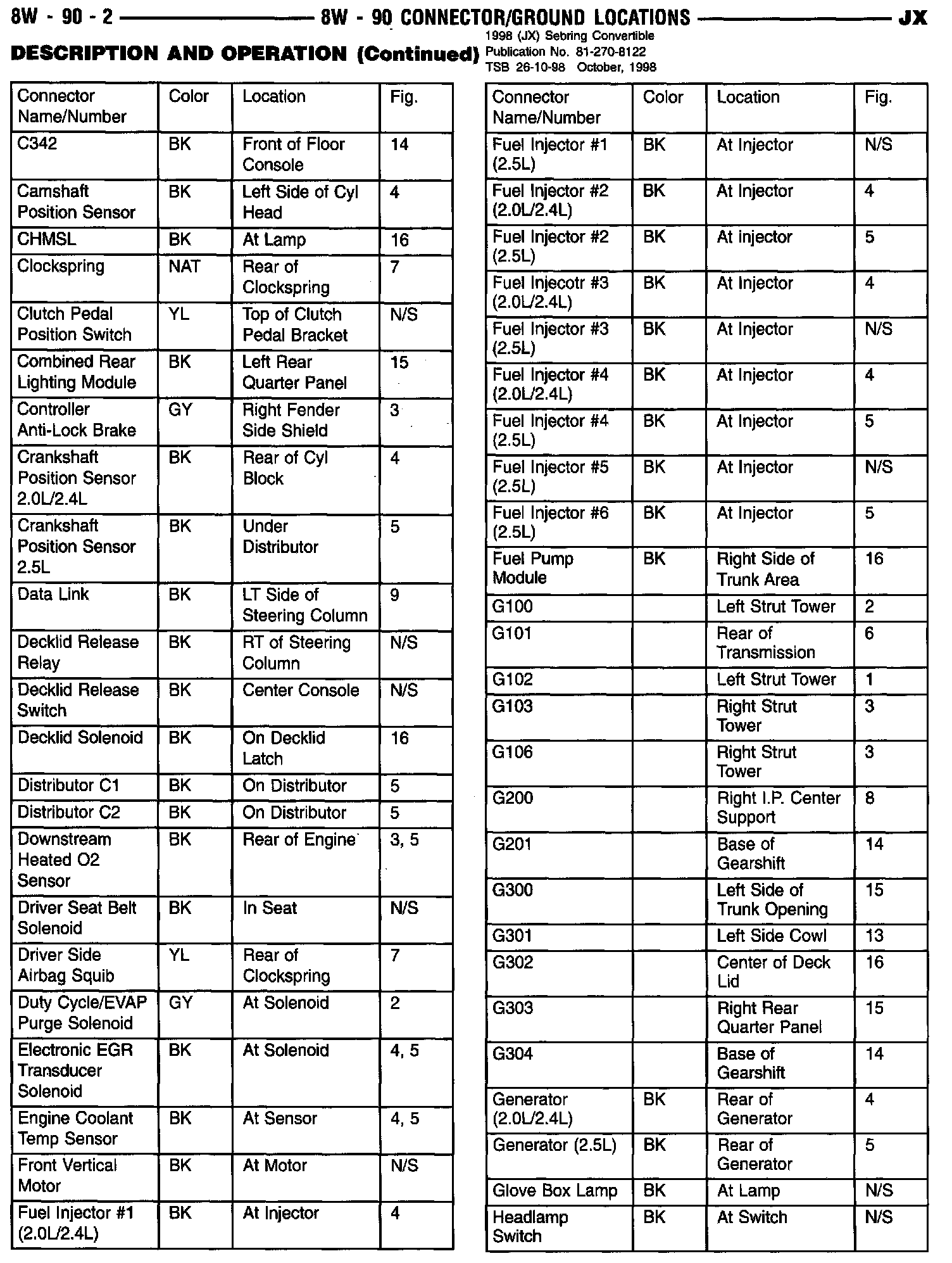 1998 Sebring Convertible Service Manual - Publication Number 81-270-8122