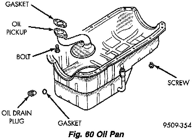 NOTE: Oil pan to cylinder block sealing is provided with Mopar (R) Silicone Rubber Adhesive Sealant or equivalent gasket material. See Form-in-Place Gaskets in Standard Service Procedures.