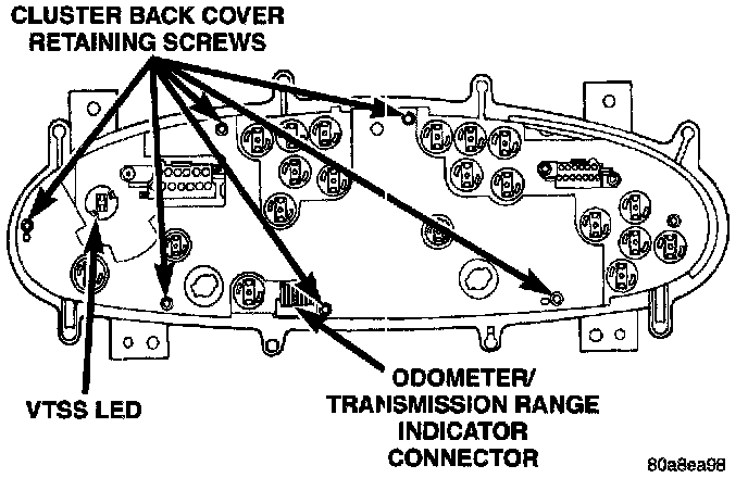4. Remove screws attaching from the back of speedometer and remove the odometer/transmission range indicator display.