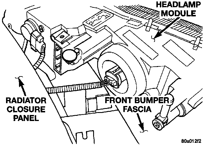 2. Remove screws holding headlamp module to radiator closure panel and headlamp adapter.