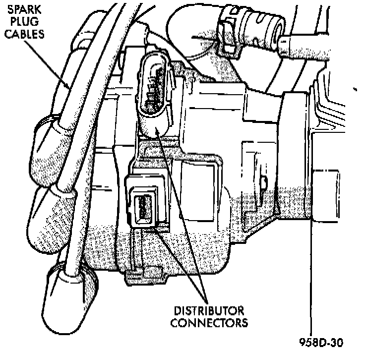 10. Remove 2 harness connectors from distributor Fig. 12.