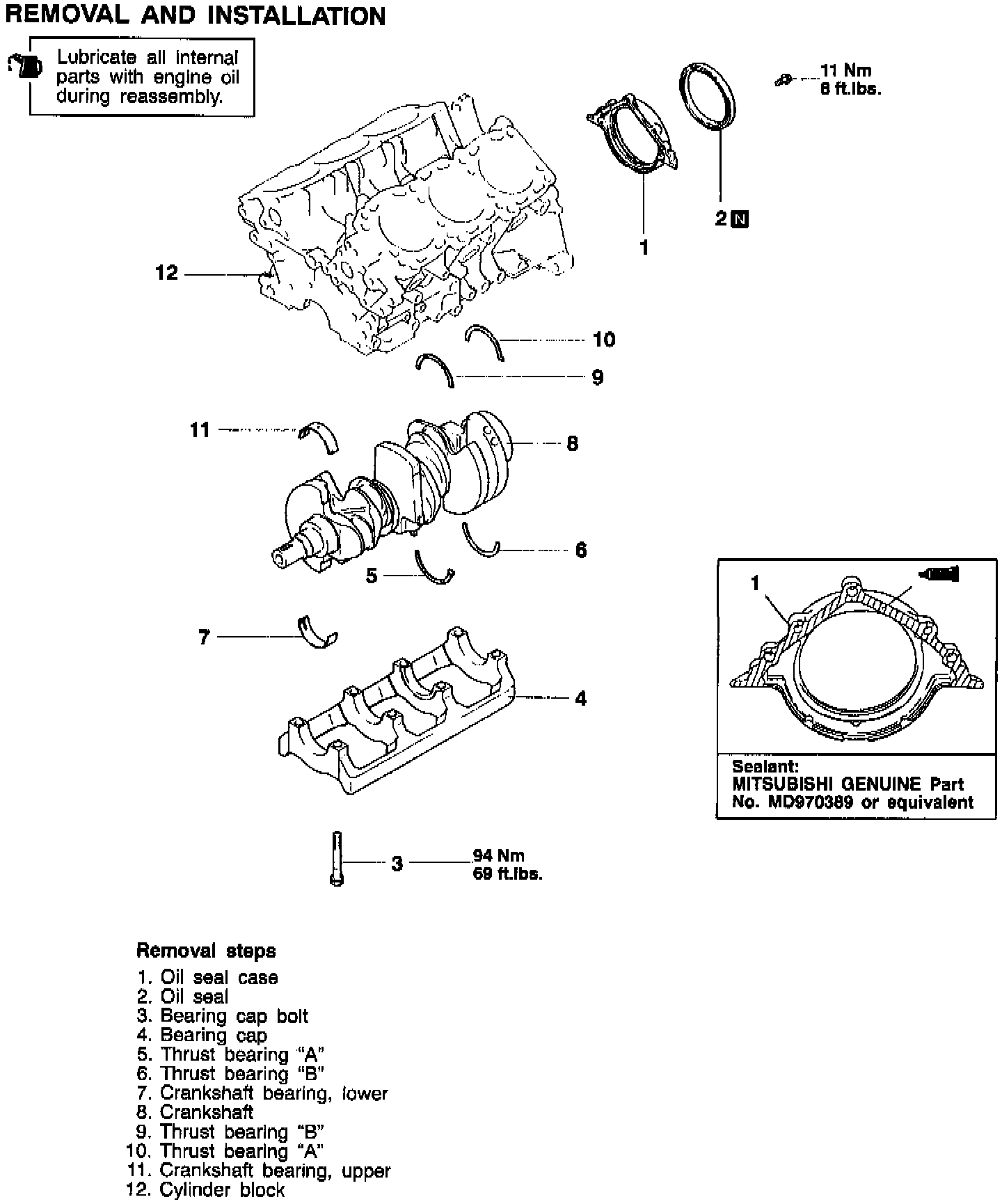 (4) After installation of the crankshaft bearing, check the crankshaft end play. If the end play exceeds the limit, replace the crankshaft bearing.