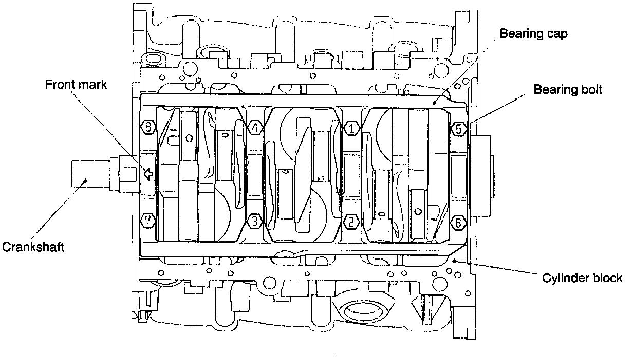 (3) Tighten the bearing cap bolts to the specified torque in the tightening sequence shown in the illustration.