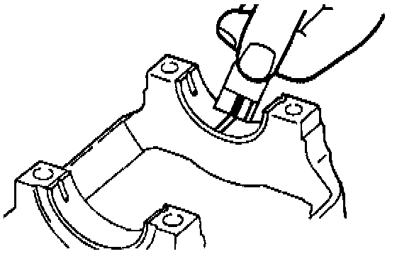 (4) Install the bearing halves with oil groove on the cylinder block side.