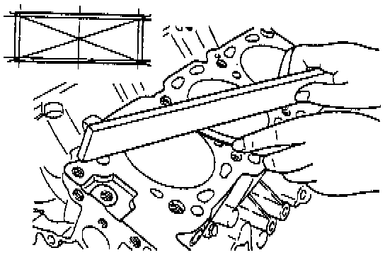 (2) Using a straight edge and feeler gauge, check the block top surface for warpage. Make sure that the surface is free from gasket chips and other foreign matter.
