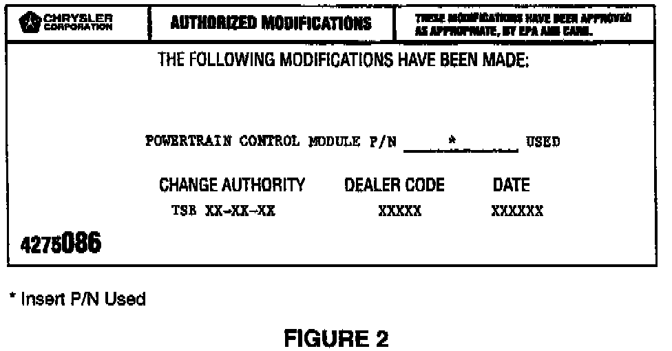 9. Type the necessary information on the "Authorized Software Update Label" p/n 04669020 (Figure 1). Attach the label to the PCM and cover the label with the clear plastic overlay.