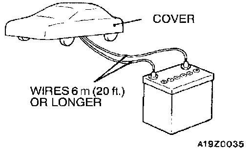 7. Connect two wires, each six meters (20 feet) long or more to the two leads of SRS AIR BAG ADAPTER HARNESS A and cover the connections with insulation tape. The other ends of the two wires should be connected to each other (short-circuited), to prevent sudden unexpected deployment of the air bag.