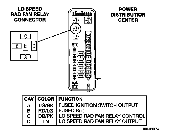 LO Speed Rad Fan Replay Connector, Power Distribution Center:
