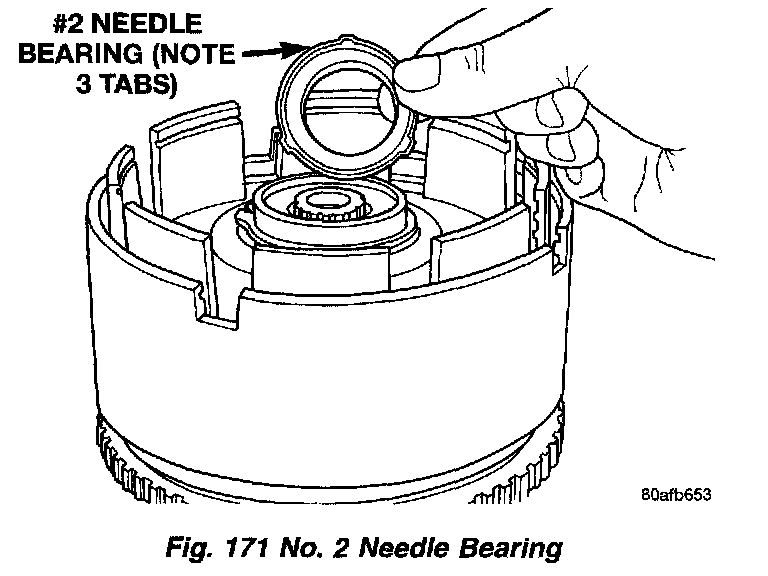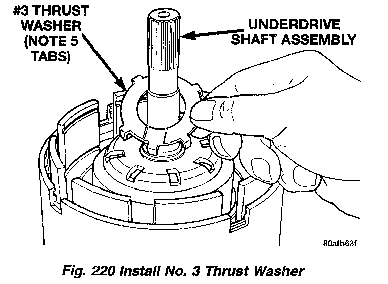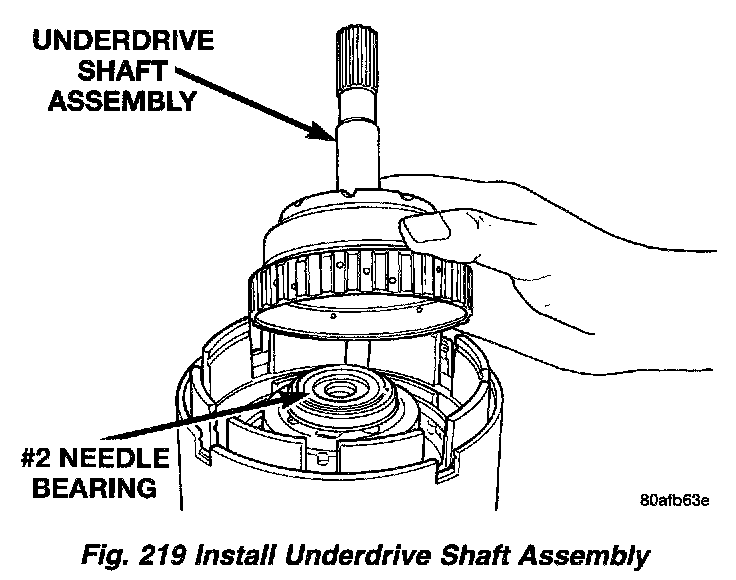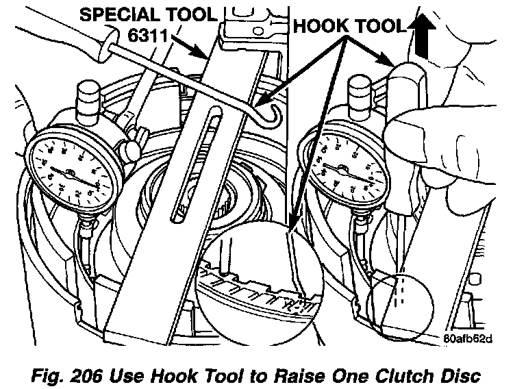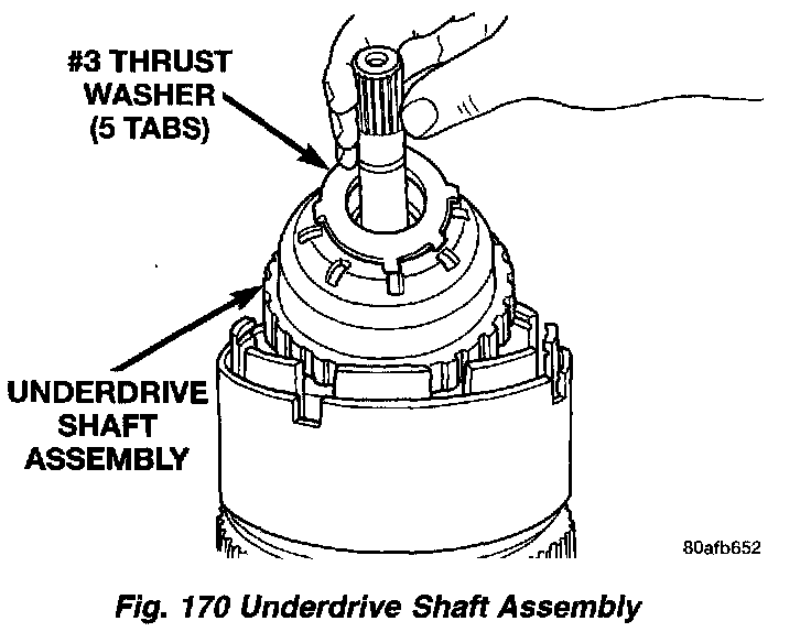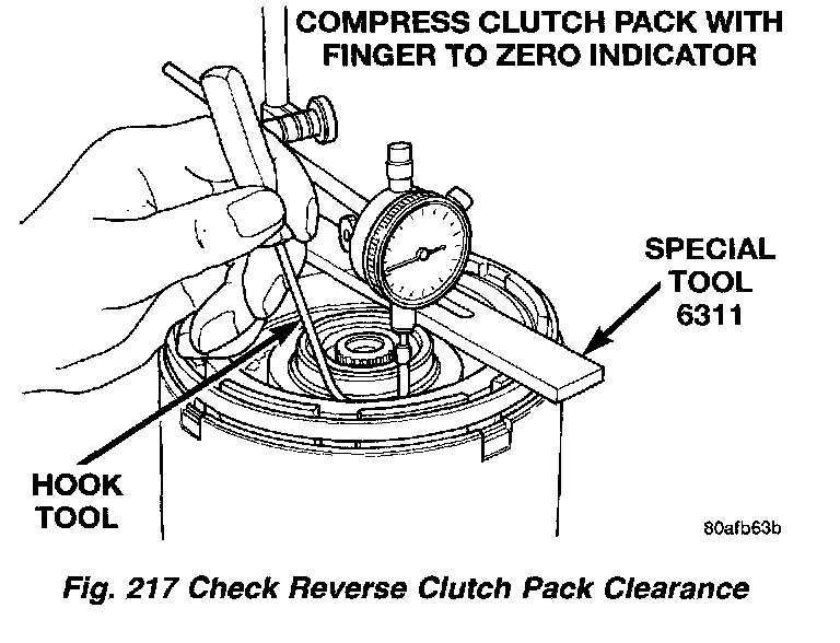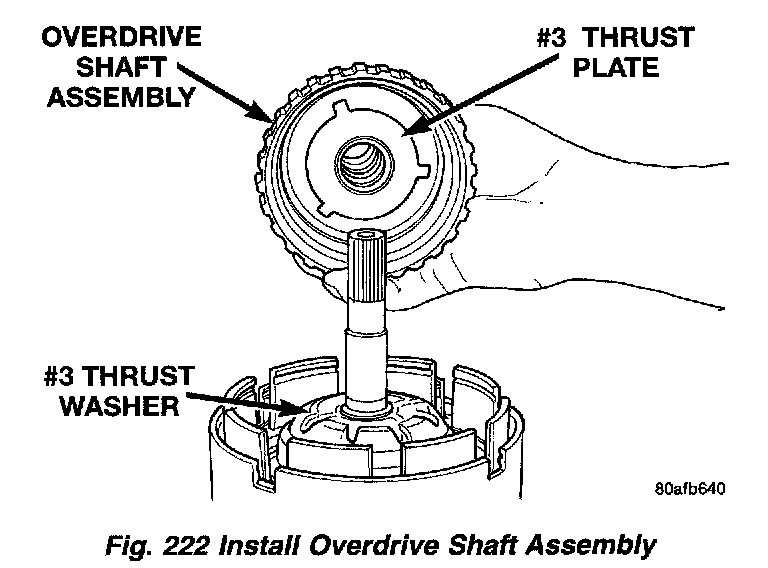 Reinstall overdrive clutch and reverse clutch as shown. Rechecking these clutch clearances is not necessary, as they were set and approved previously.
