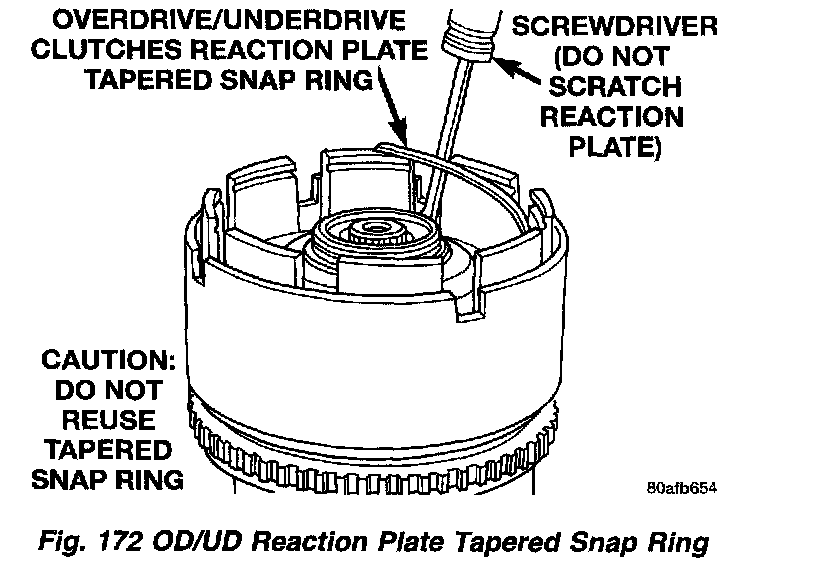 - The OD/UD clutches reaction plate has a step on both sides. Install the OD/UD clutches reaction plate tapered step side up.
