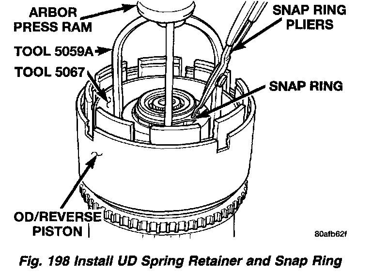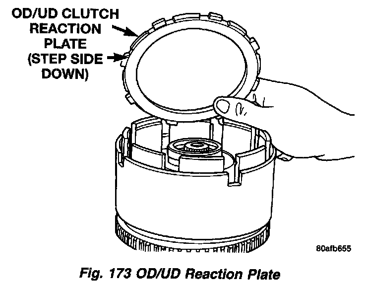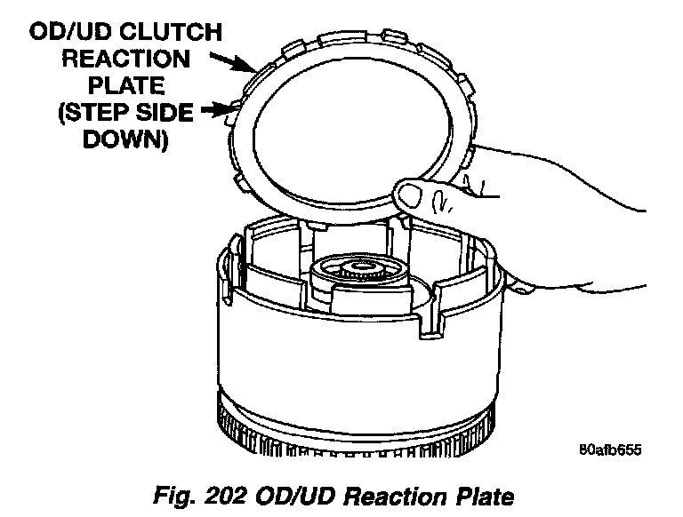 The OD/UD clutches reaction plate has a step on both sides. Install the OD/UD clutches reaction plate tapered step side up.