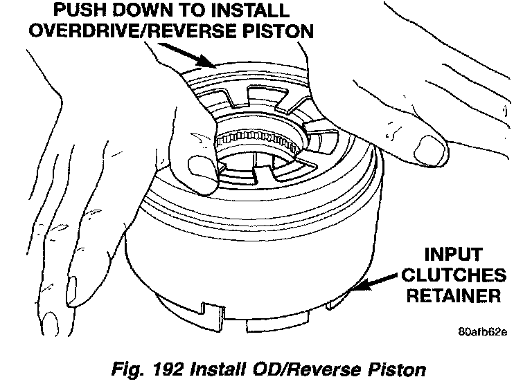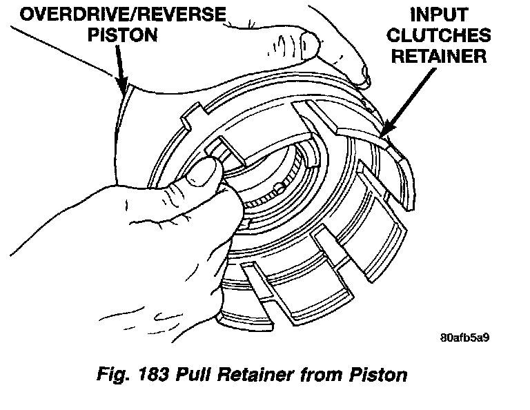 To complete the assembly of the input clutch retainer, the reverse clutch and the overdrive clutch must be removed from the retainer.