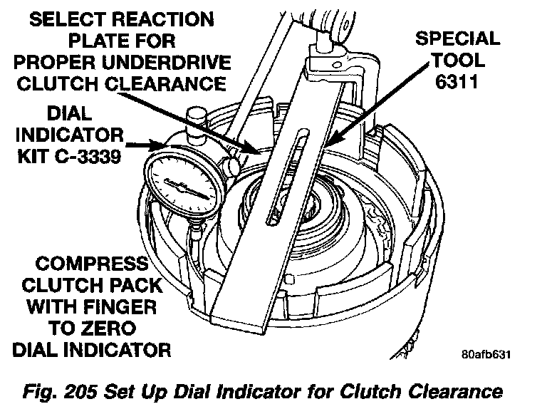 Underdrive clutch pack clearance must be 0.91 to 1.47 mm (0.036 to 0.058 inch). Select the proper reaction plate to achieve specifications: