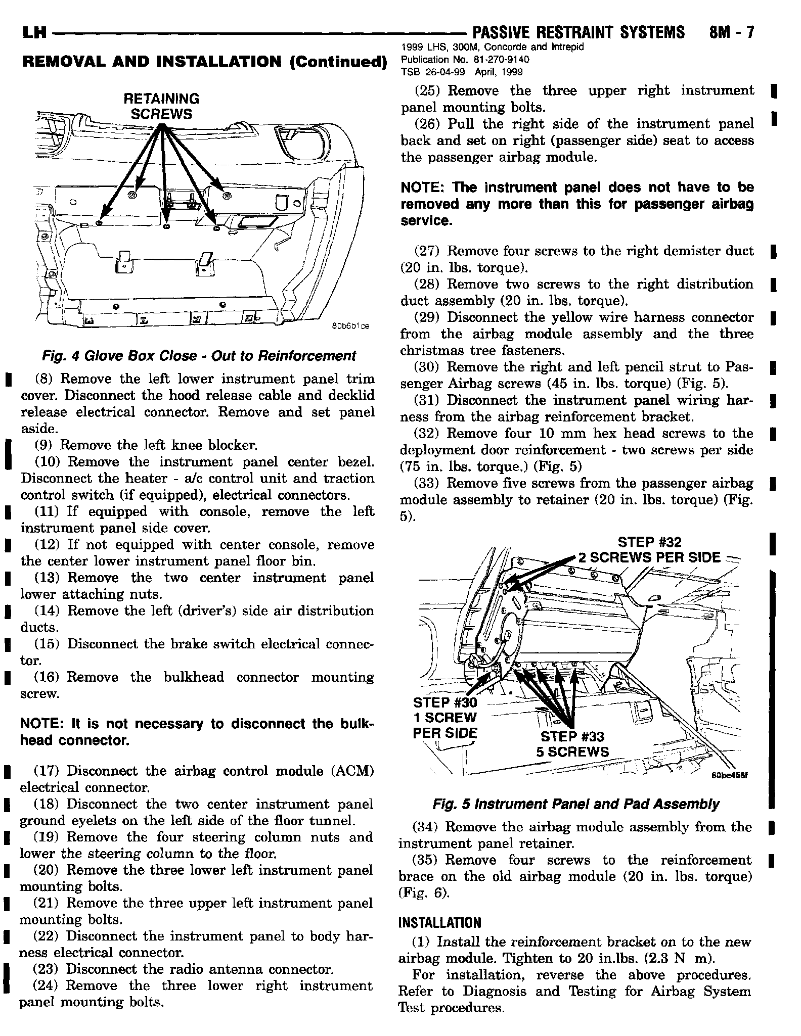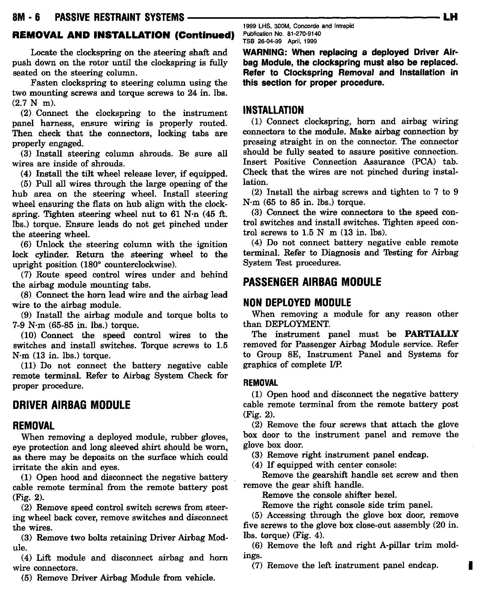 1999 Concorde, Intrepid, LHS, 300M Service Manual - Publication Number 81-270-9140