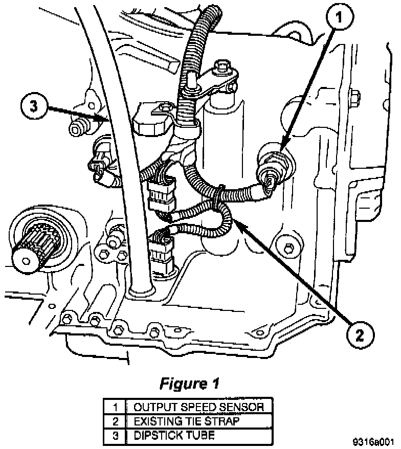 A jumper harness was added to the Transmission Range Sensor (TRS) connector early in the 1999 model year to adapt a new TRS to the existing transmission harness. Inspect the wires at the output speed sensor connector for damage and repair as necessary. If the jumper harness is tie strapped to the output speed sensor wires perform the Repair Procedure.