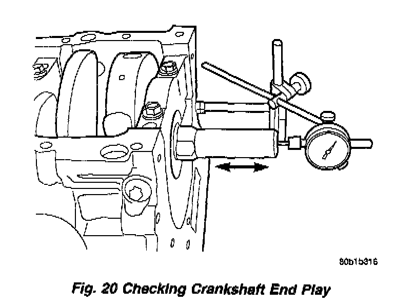 4. Move crankshaft all the way to the front and read the dial indicator. Refer to Crankshaft End Play Specification Chart.