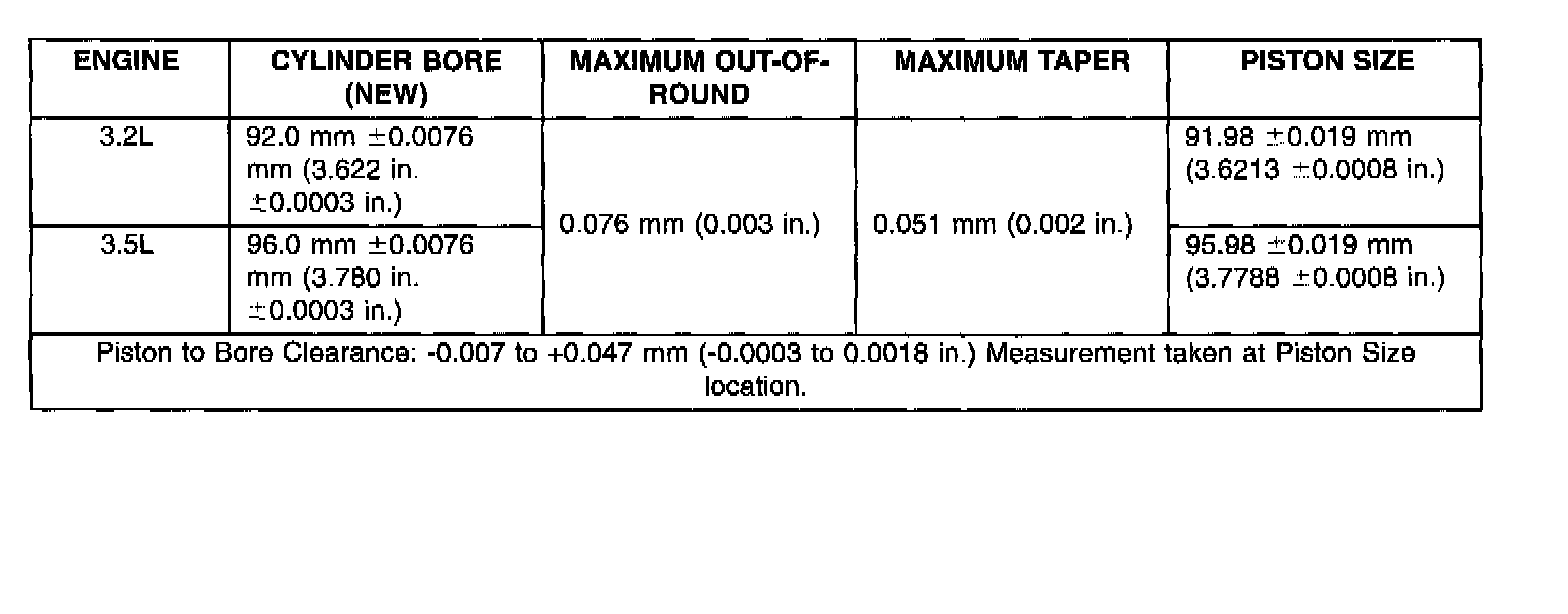 Cylinder Bore And Piston Specification Chart
