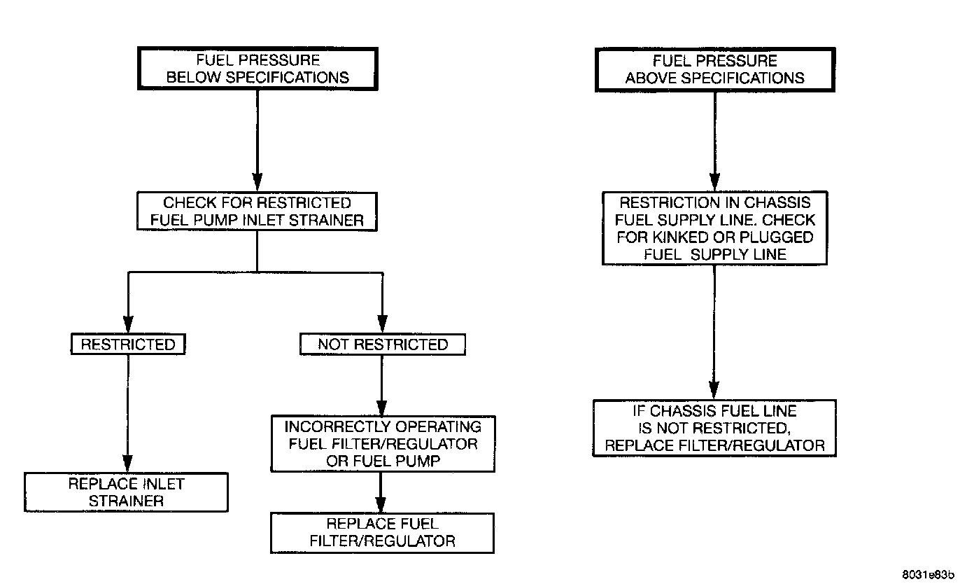 - If fuel pressure is above specifications (54 psi or higher) check for a kinked or restricted fuel supply line. If the supply line is not kinked or restricted, replace the Fuel Filter/Pressure Regulator.