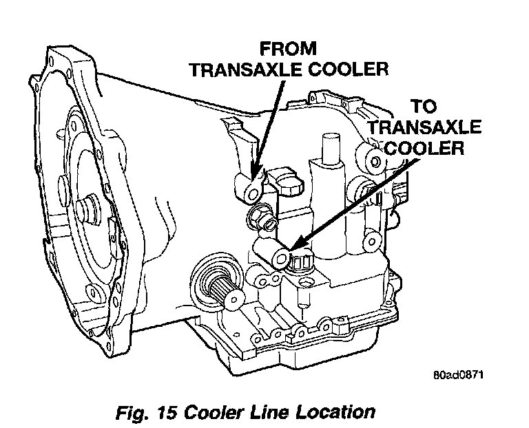 4. Disconnect the cooler lines at the transmission (Fig. 15).