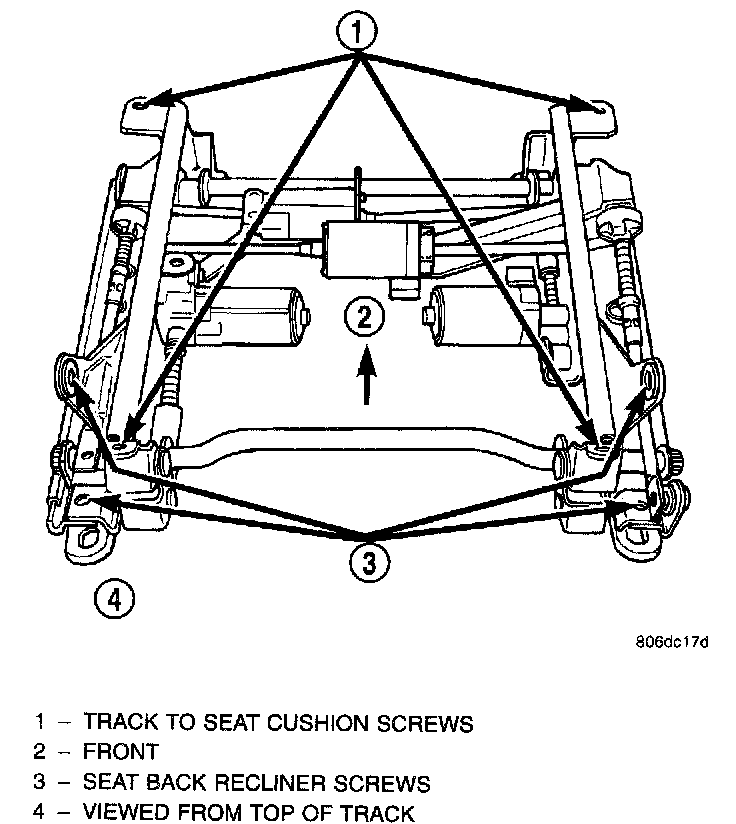3. Remove four seat track mounting screws from cushion pan.