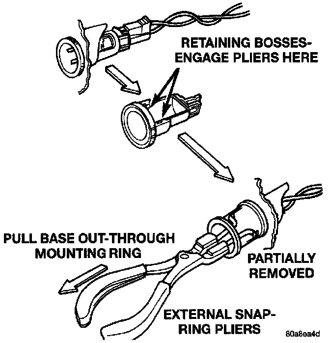 4. Pull out the base through mounting ring by gently rocking pliers. A tool can be made to do the same.