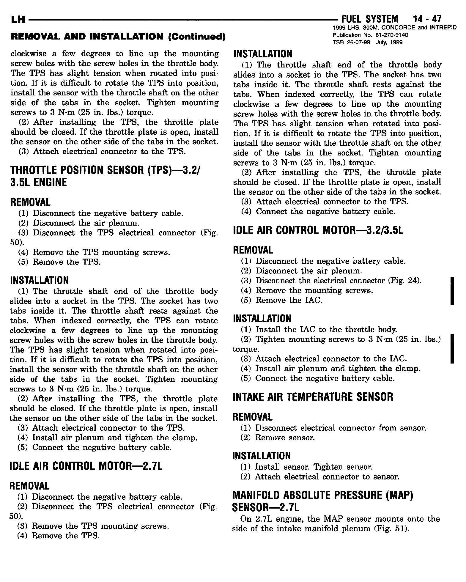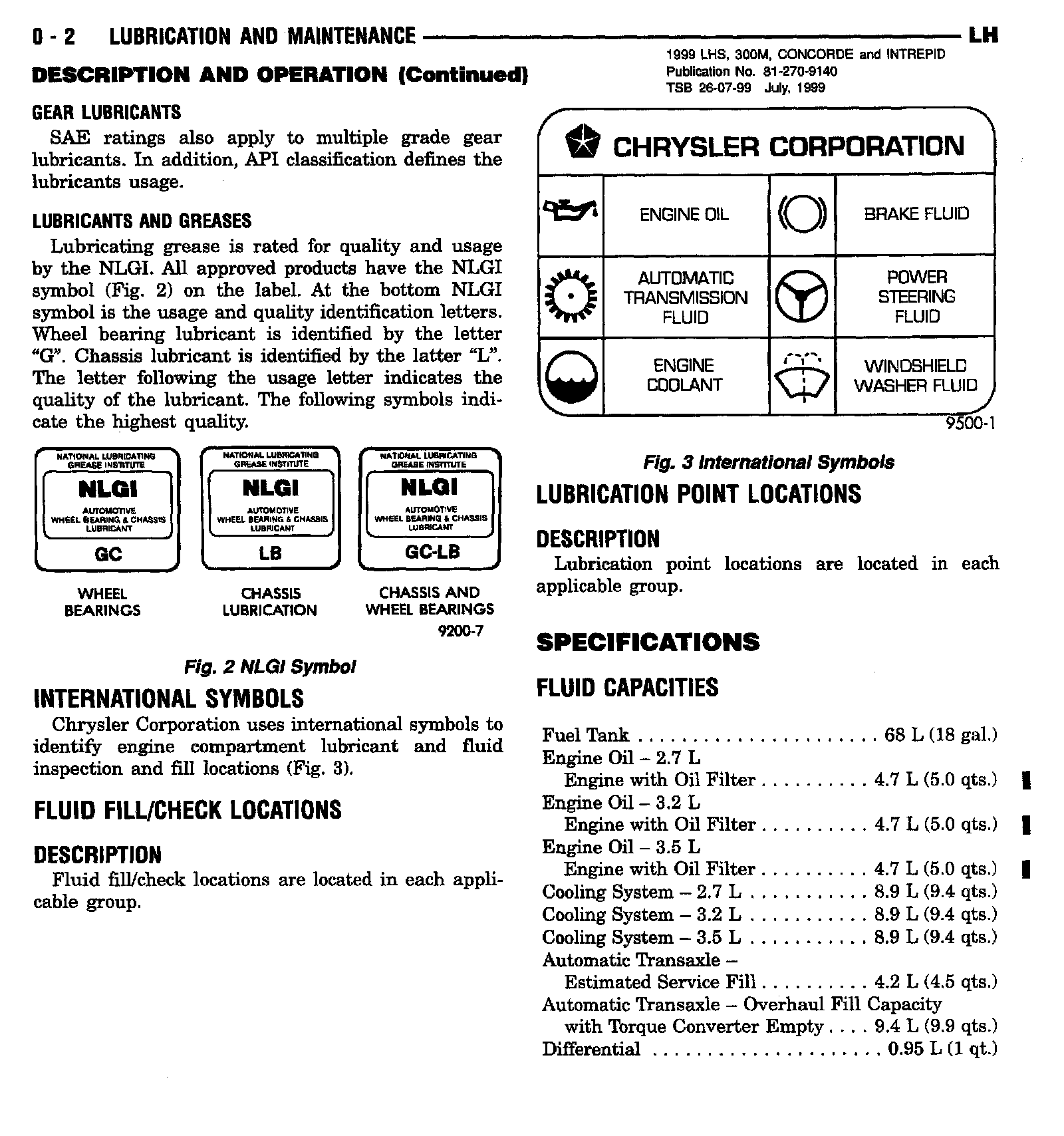 1999 Concorde, Intrepid, LHS, 300M Service Manual - Publication Number 81-270-9140