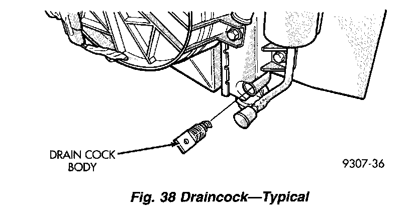 NOTE: To open draincock on vehicle equipped with 2.5L engine, use a 3/8 inch drive extension 3" long, a 19mm socket with universal.