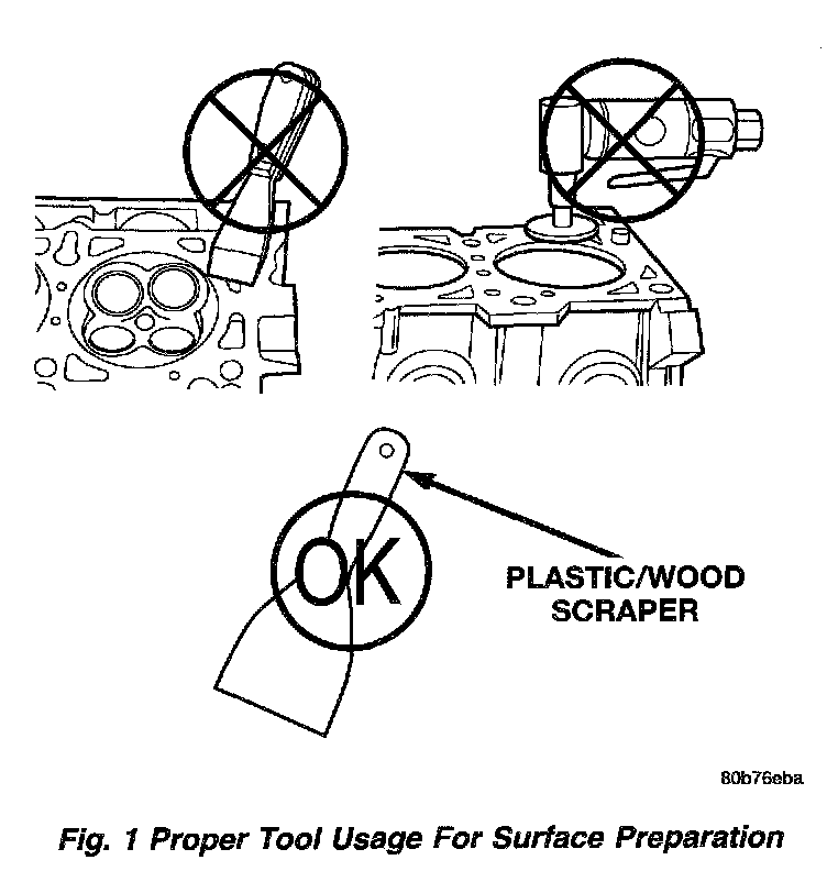 To ensure engine gasket sealing, proper surface preparation must be performed, especially with the use of aluminum engine components and multi-layer steel cylinder head gaskets.Never use the following to clean gasket surfaces: