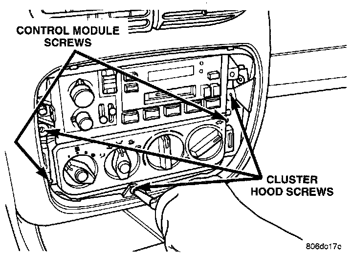 3. Remove cluster hood bezel retaining screws in the trim bezel opening.