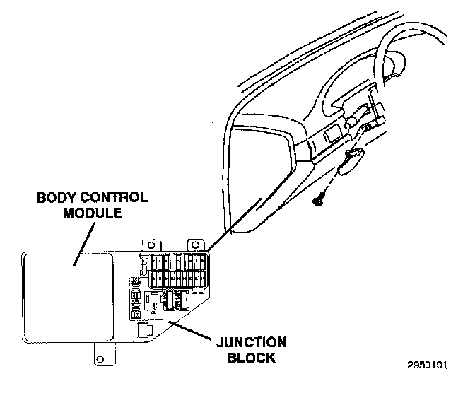 The Body Control Module is connected to the electrical Junction Block (JB), located in the left end cap of the instrument panel.