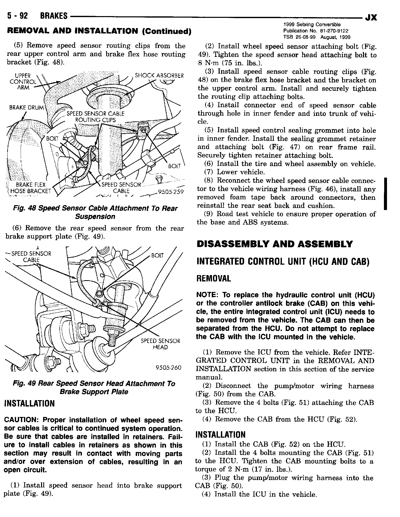 1999 Sebring Convertible Service Manual - Publication Number 81-270-9122