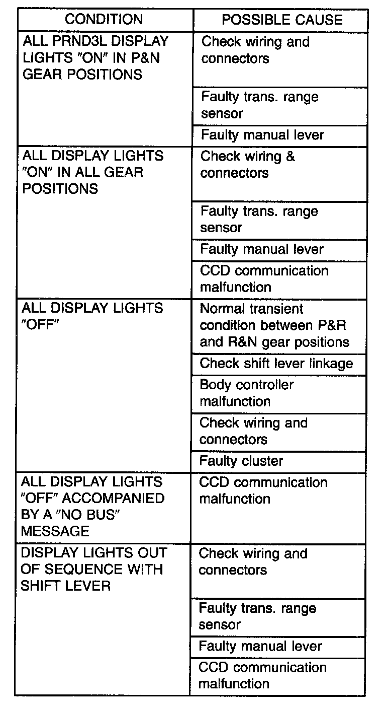 - DIAGNOSTIC TROUBLE CODE P0705-PRNDL Error-usually accompanied by all PRNDL lights turning on in Park and Neutral. This will result in if three such errors are detected after any one "key-on"