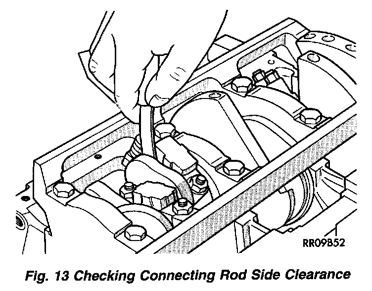 Using a feeler gauge, check connecting rod side clearance (Fig. 13). Refer to Connecting Rod Specification Chart.