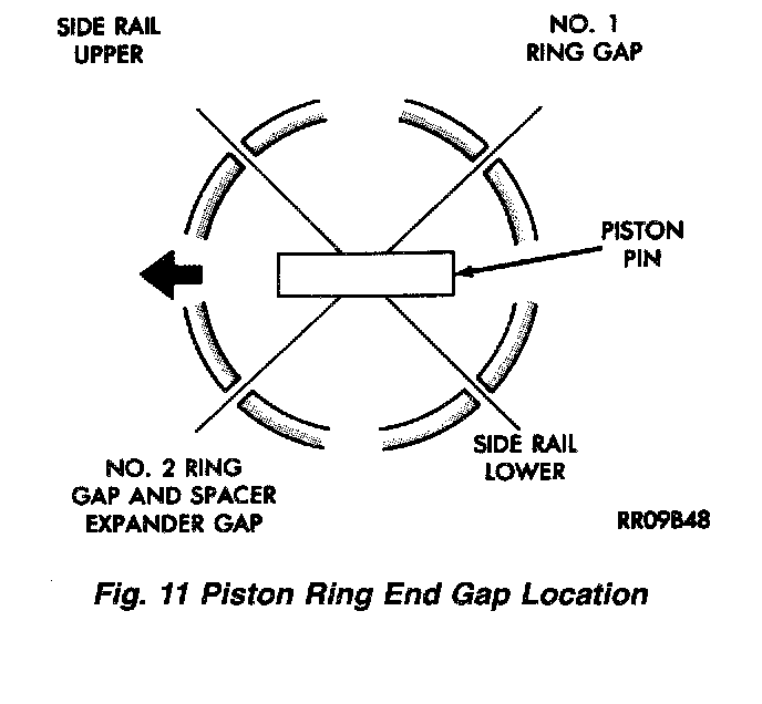 4. Position piston ring end gaps as shown (Fig. 11).