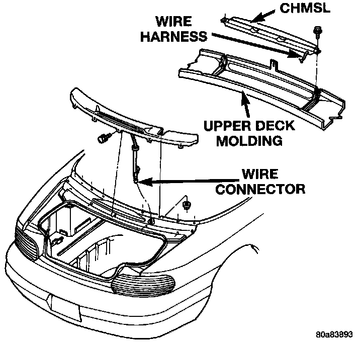 2. Remove screws attaching CHMSL assembly to upper deck molding.
