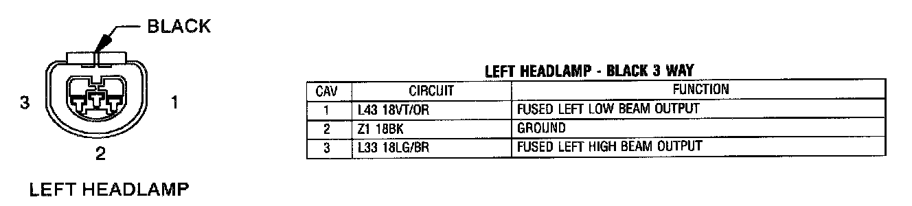 Left Headlamp - Black 3 Way:
