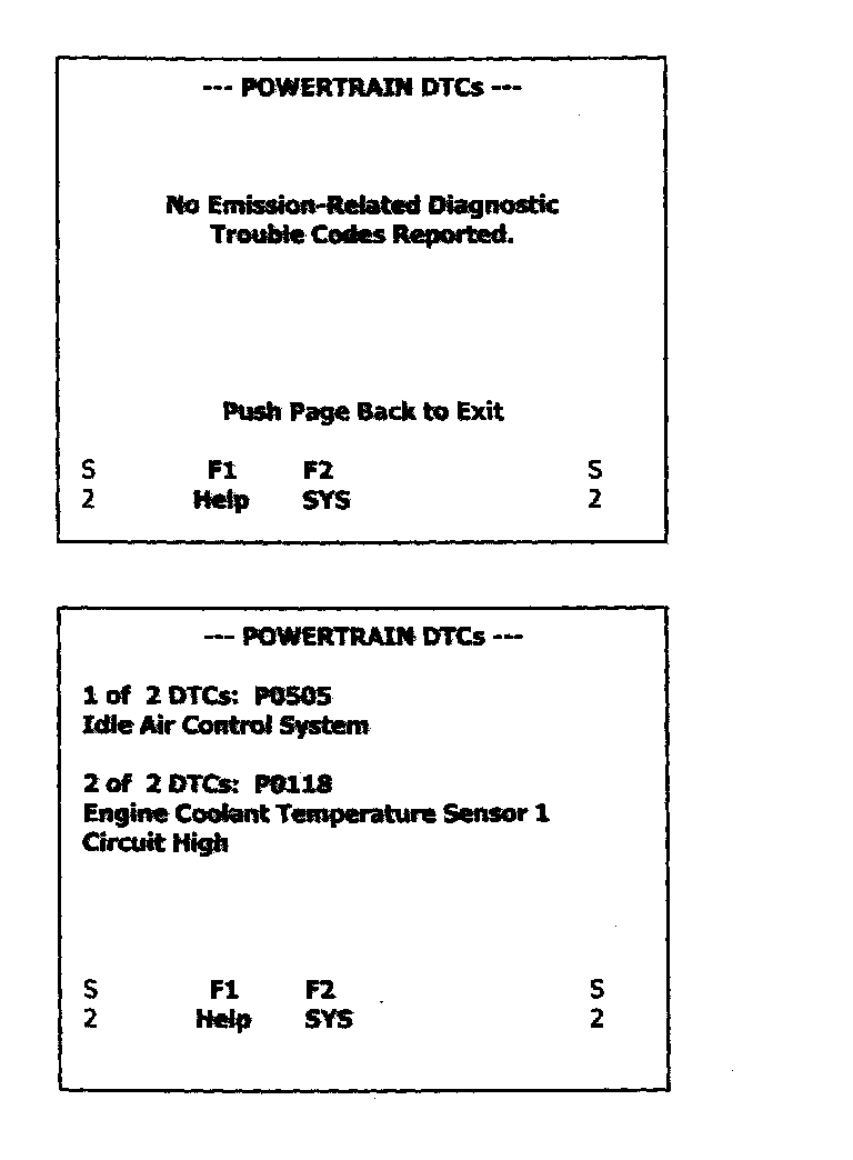 When a manufacturer-specific DTC (P1000 family) is encountered the message "No text available for DTC code" will be displayed.