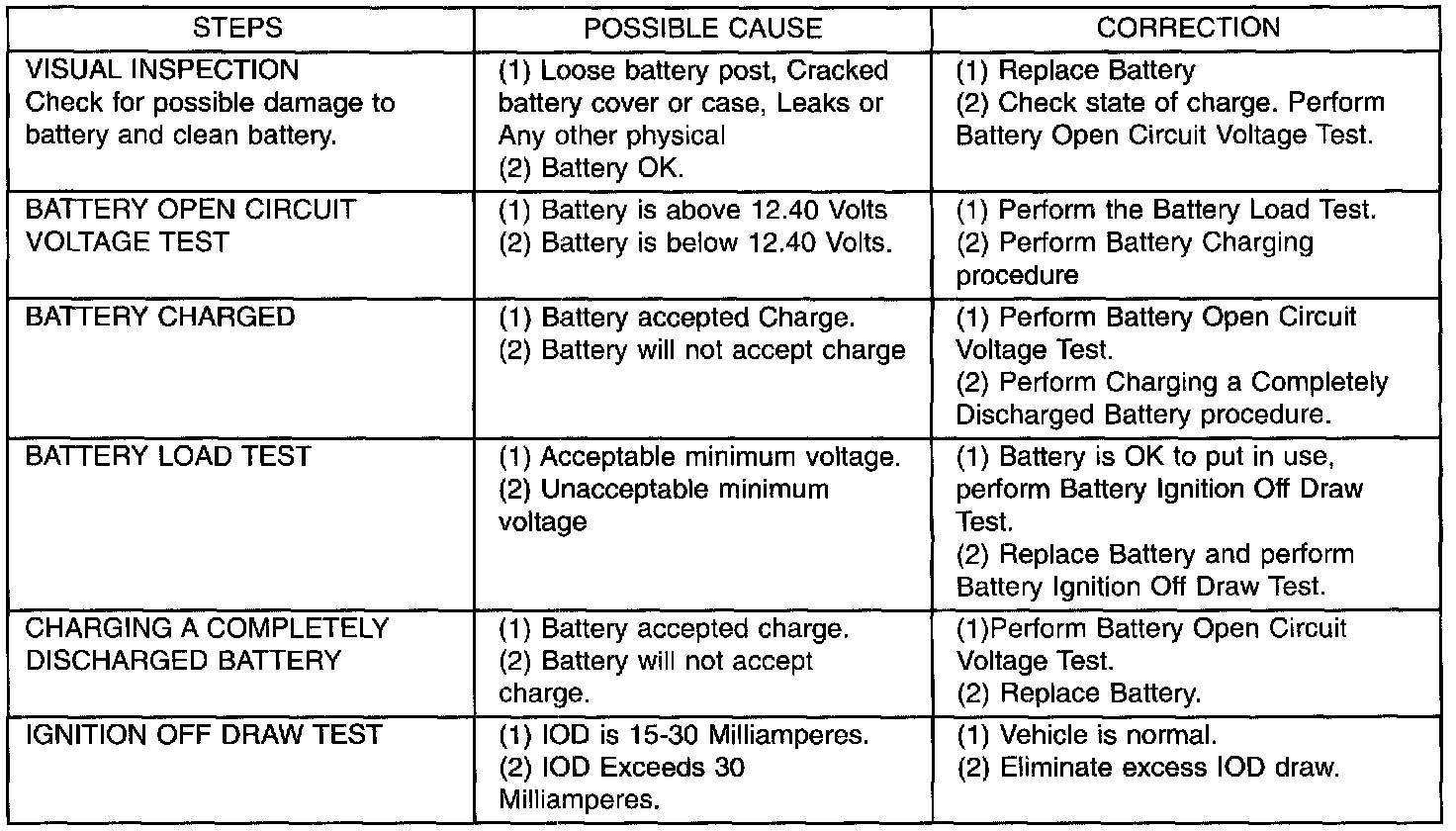 Causes of Battery DischargingBattery Diagnosis And Testing Chart: