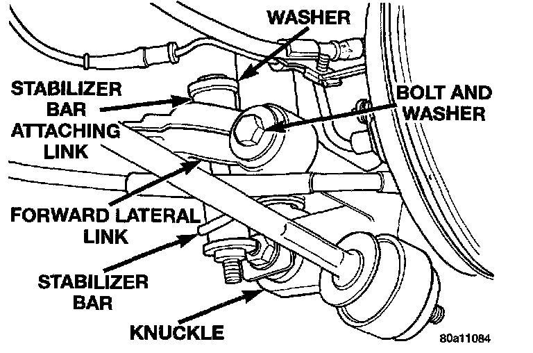 3. Remove the rear stabilizer bar attaching link from the forward lateral link.