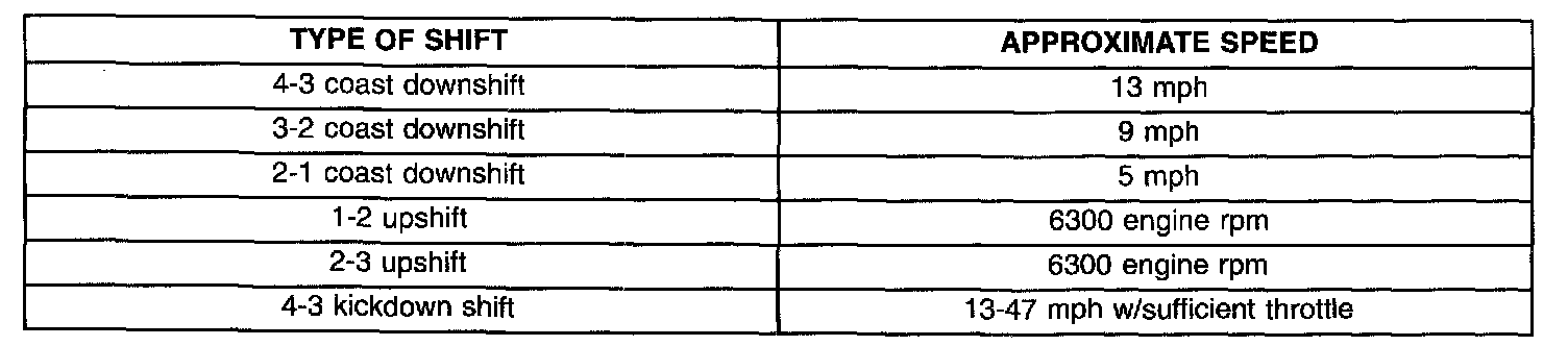 AUTOMATIC SHIFTS WILL OCCUR UNDER THE ABOVE CONDITIONS