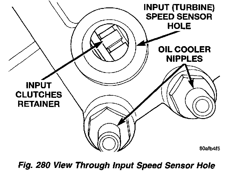 CAUTION: If view through input speed sensor hole is not as shown above, the input clutches assembly is not seated properly.