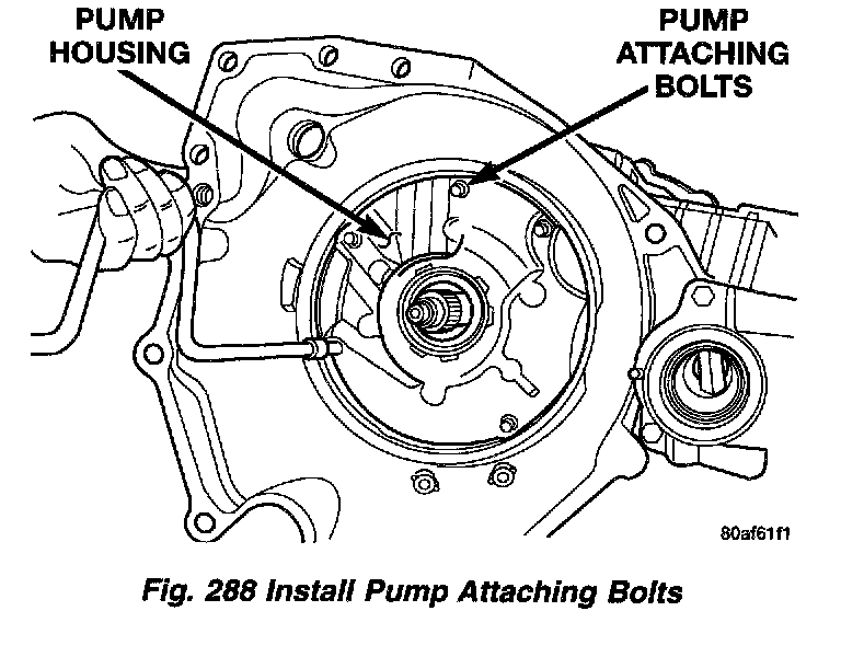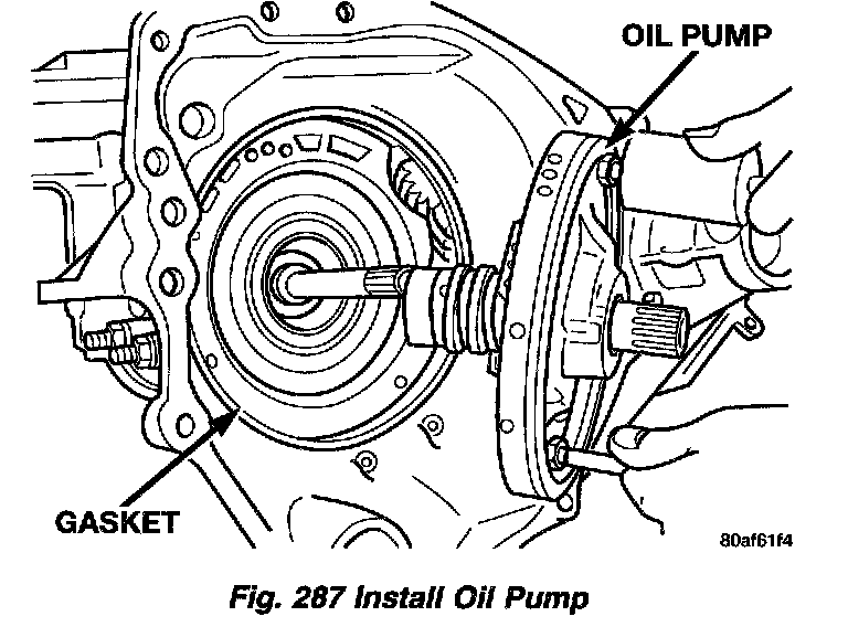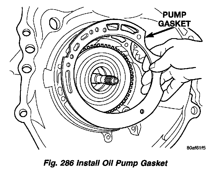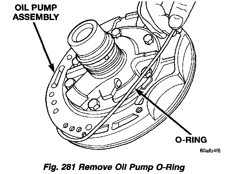 Remove the oil pump O-ring (Fig. 281). You will be able to install and remove the oil pump and gasket very easily to select the proper No. 4 thrust plate.