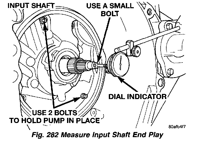 DETERMINING No. 4 THRUST PLATE THICKNESS-INPUT SHAFT END PLAYFig. 279: