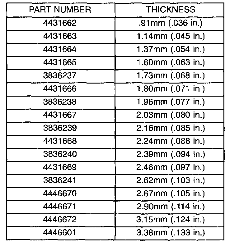 For example, if end play reading is 0.055 inch, select No. 4 Thrust Plate which is 0.071 to 0.074 thick. This should provide an input shaft end play reading of 0.020 inch which is within specifications,