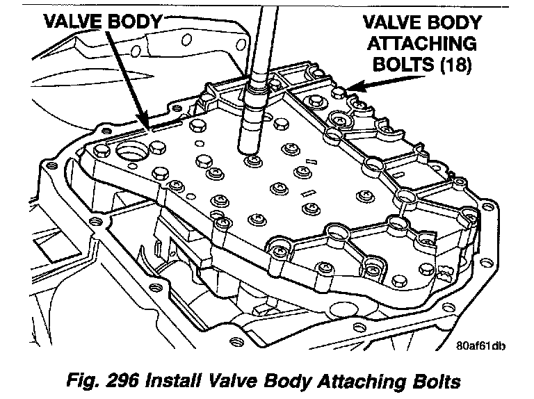 CAUTION: Do not handle the valve body from the manual valve. Damage could result.