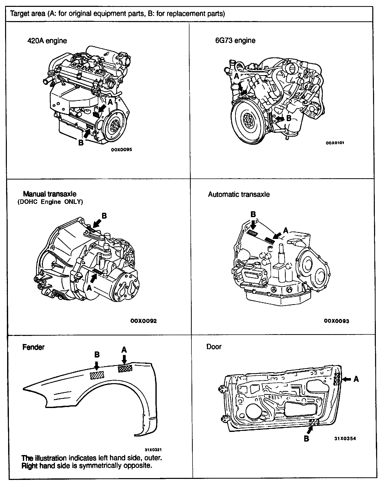 In order to protect against theft, a Vehicle Identification Number (VIN) is stamped in, or attached as a label to, the following major parts of the engine and transaxie, as well as main outer panels:
