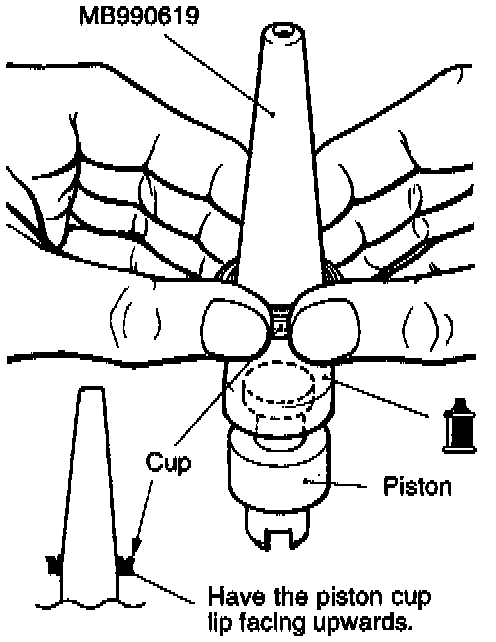 CAUTION: In order to keep the piston cup from becoming twisted or slanted, slide the piston cup down the tool slowly and carefully, without stopping.