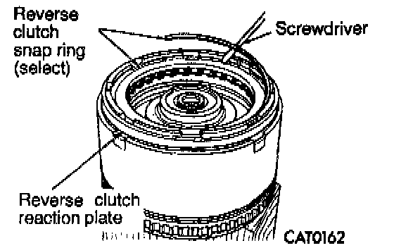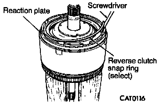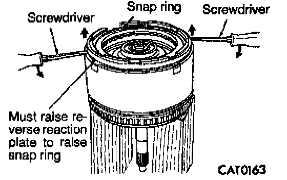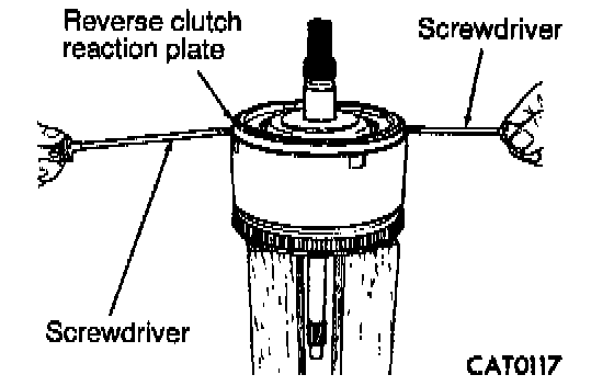 27. Raise reverse clutch reaction plate by prying up at two locations with screwdrivers to seat snap ring.
